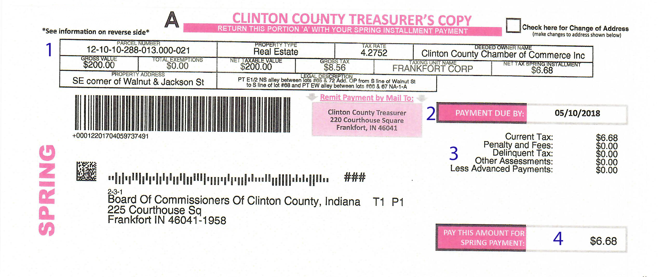 2. The “Payment Due By” line of your Tax Bill states the last day the amount owed on the property can be paid to the Bartholomew County Treasurer’s Office before penalties will automatically be applied.